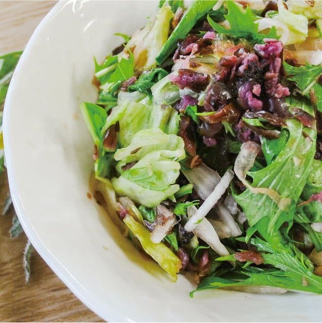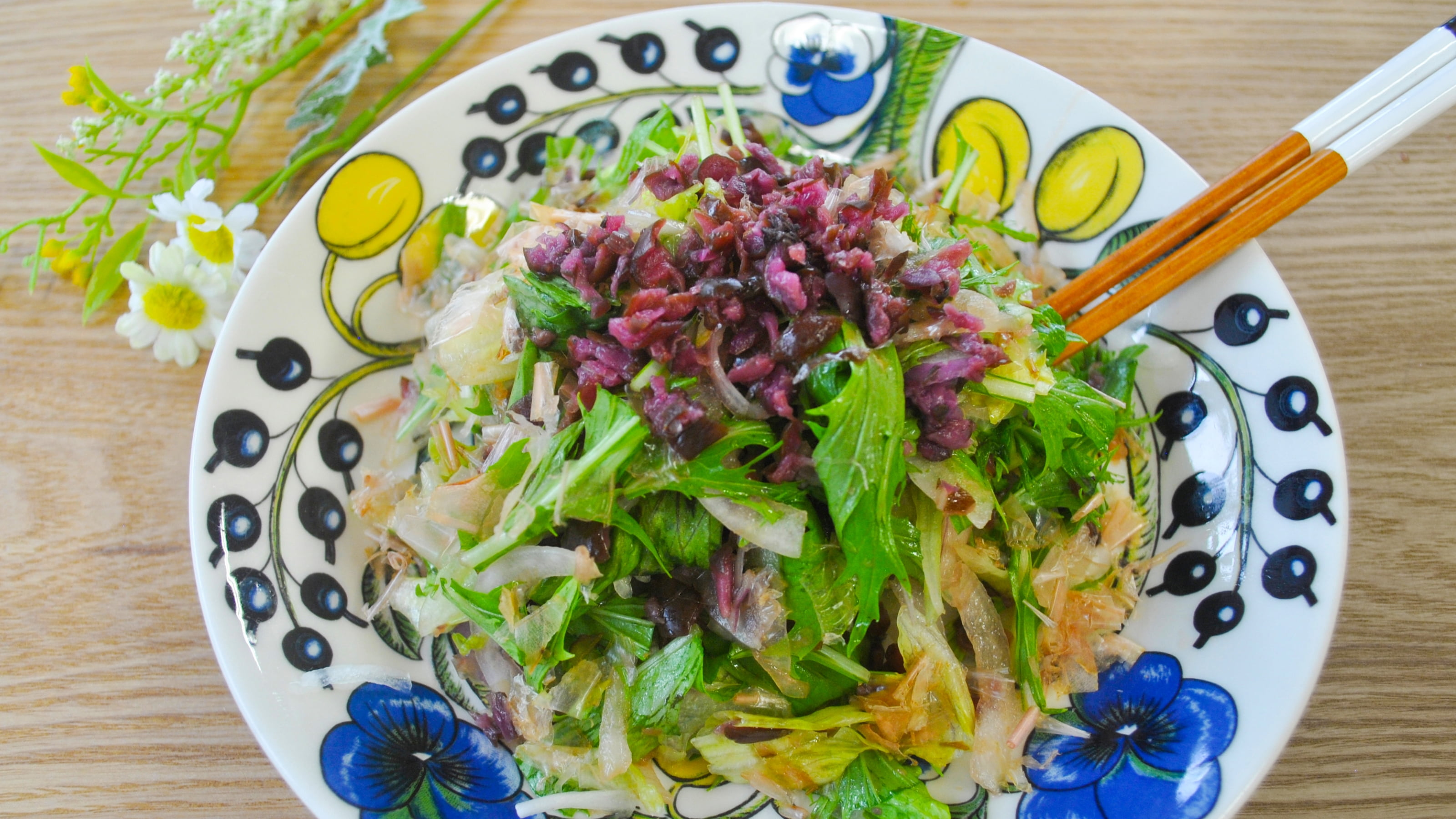 Mizuna (Japanese Mustard Greens) Salad with Shiso-zuke Kyuri